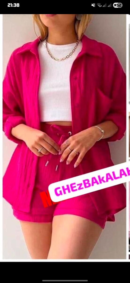Explorez le style et le confort avec cet ensemble short et chemise rose éclatant. Idéal pour les journées décontractées ou une sortie estivale, cet ensemble apporte une touche de couleur vibrante à votre garde-robe. Confortable et polyvalent, il est parfait pour les femmes qui aiment allier mode et aisance.