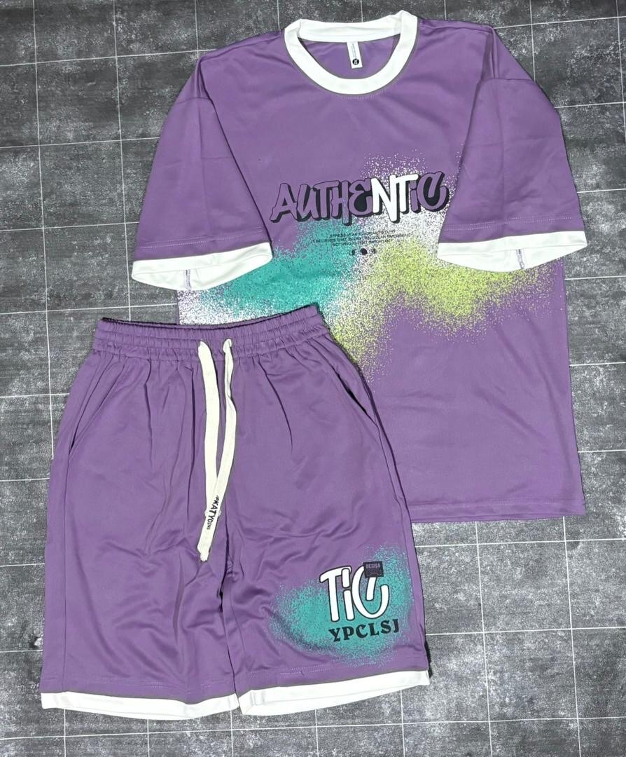 Un ensemble de sport décontracté et tendance pour un look unique et coloré. Composé d'un t-shirt à manches courtes et d'un short assorti, idéal pour le quotidien ou les loisirs. Fabriqué en tissu léger pour un confort optimal. Parfait pour les sorties détentes ou les activités extérieures.