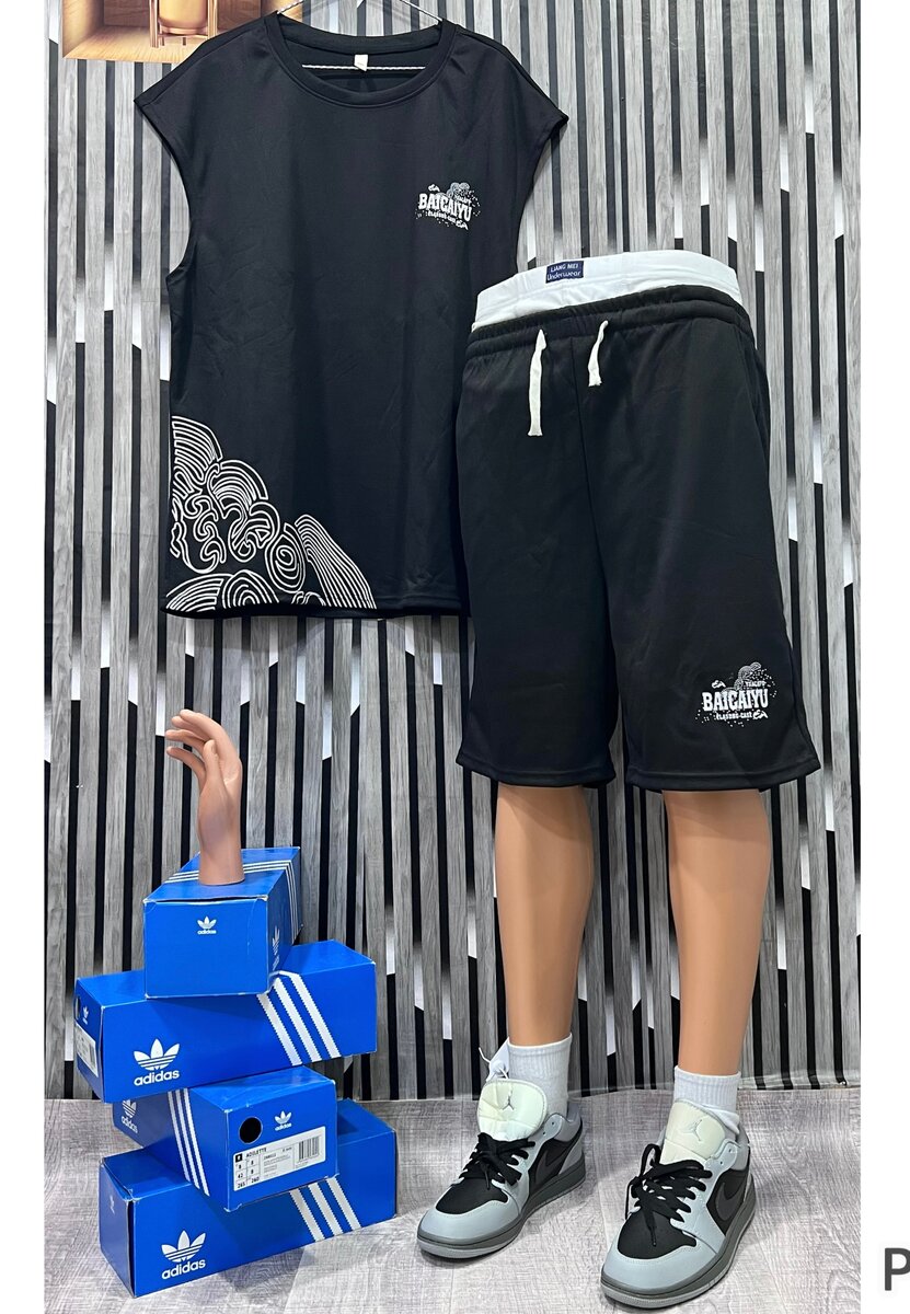Optez pour cet ensemble sportif élégant, idéal pour les activités physiques et les moments de détente. Composé d'un t-shirt sans manches et d'un short confortable, il assure style et liberté de mouvement. Parfait pour la salle de sport ou une sortie décontractée.