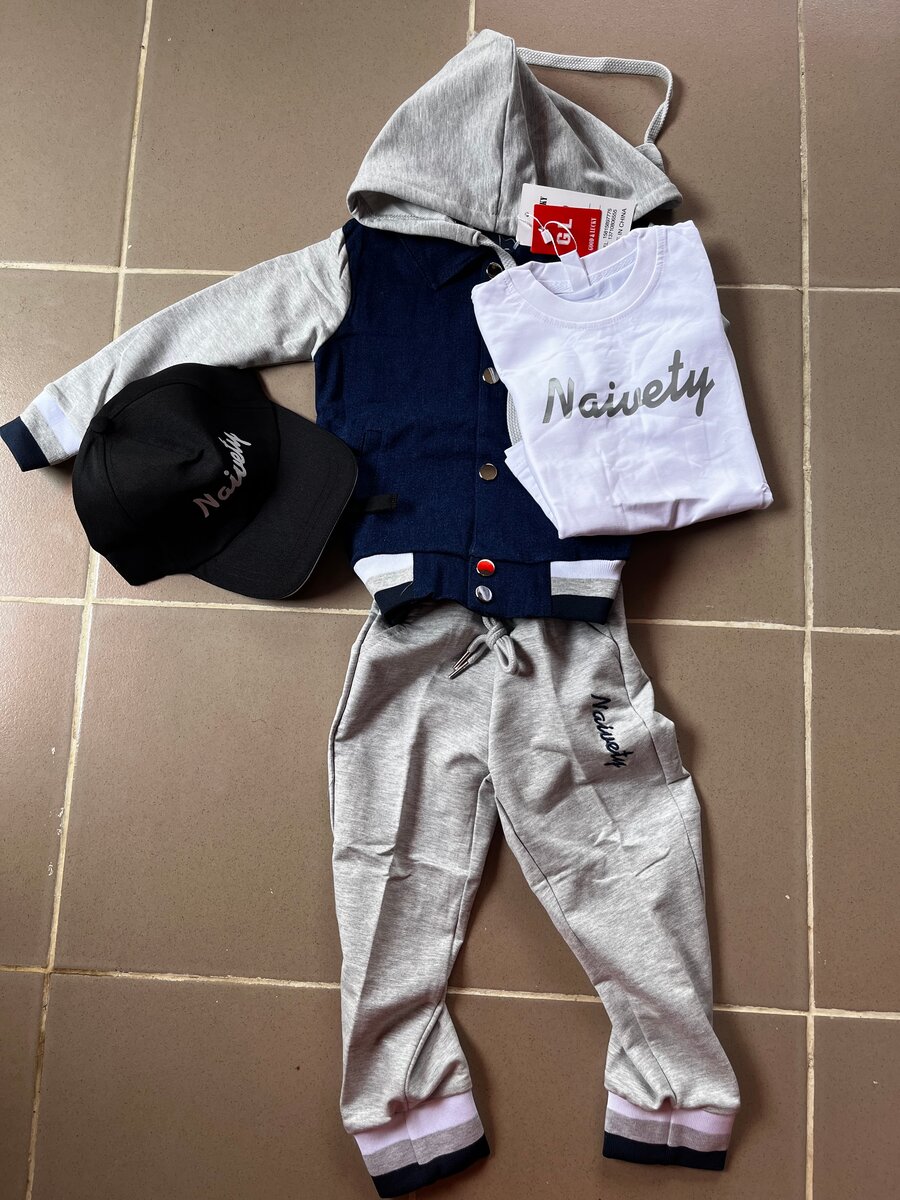 Découvrez cet ensemble sport pour enfant Naivety, parfait pour les journées actives. Composé d'une veste à capuche confortable, d'un t-shirt stylé, d'un pantalon souple et d'une casquette assortie, cet ensemble assure style et confort. Idéal pour les aventures en plein air ou les tenues décontractées, il offre une grande liberté de mouvement. Donnez à votre enfant un look tendance et pratique !
