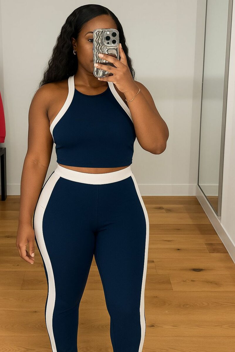 Élégant ensemble de sport pour femme, composé d'un haut ajusté et d'un bas moulant. Parfait pour le fitness ou le yoga, ce set offre un confort optimal grâce à son tissu extensible. Idéal pour un look sportif tendance!