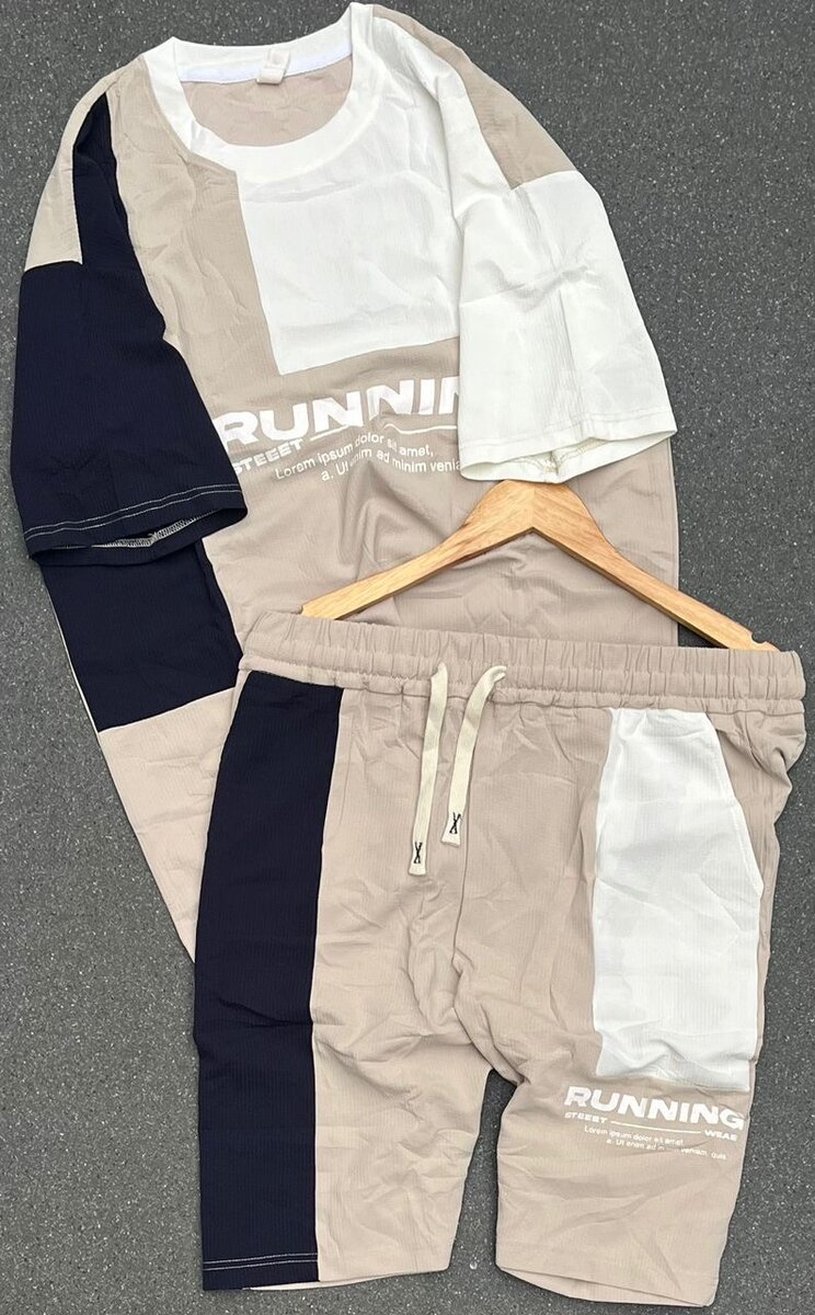 Un ensemble casual pour homme idéal pour le sport. T-shirt et short assortis avec imprimé moderne, parfait pour un look dynamique. Conçu pour offrir confort et style lors des activités sportives.