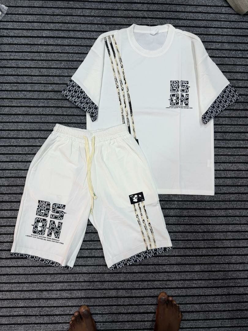 Ensemble de sport léger pour hommes, idéal pour l'été. Composé d'un t-shirt et d'un short, il allie confort et style avec ses motifs tendance. Parfait pour le sport ou une tenue décontractée. Disponible en plusieurs designs uniques.