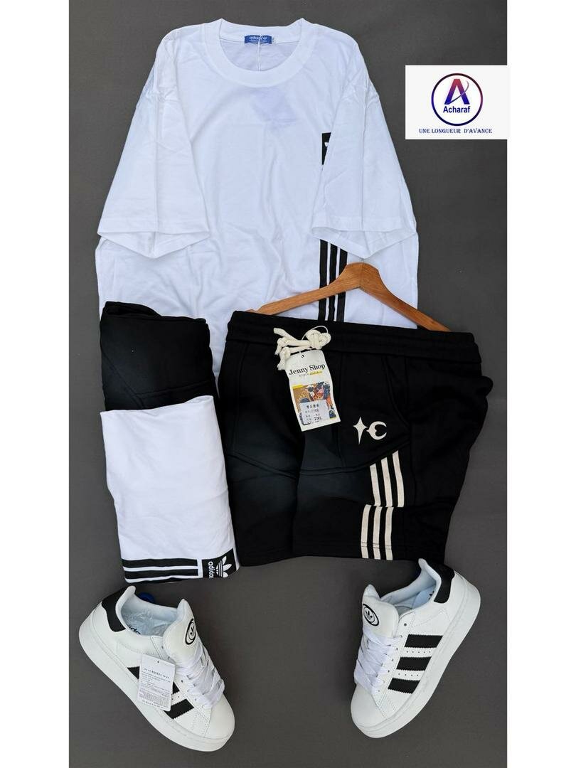 Découvrez cet ensemble sport pour homme, alliant style et confort. Idéal pour vos séances de sport ou un look décontracté. Composé d'un t-shirt blanc, short noir avec bandes et sneakers assortis, parfait pour rester tendance. Un choix incontournable pour les amateurs de mode athlétique.