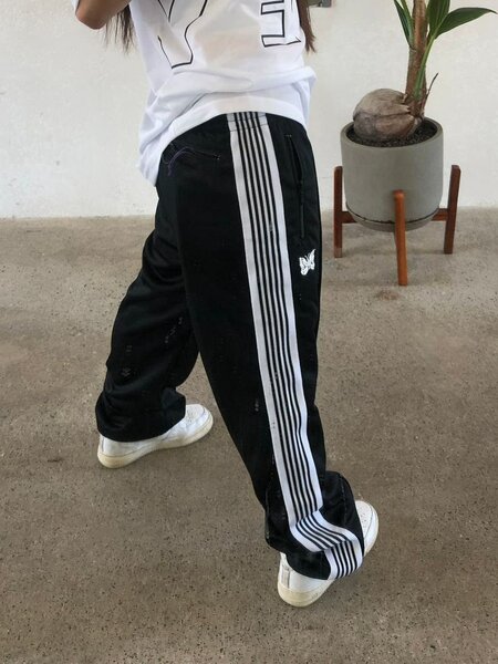 Ensemble de sport élégant et confortable, idéal pour les activités sportives ou décontractées. Composé d'un haut rose à manches longues avec bandes noires et un pantalon noir avec bandes blanches. Parfait pour les amateurs de style et confort. Associez-le avec des baskets pour un look dynamique et tendance.
