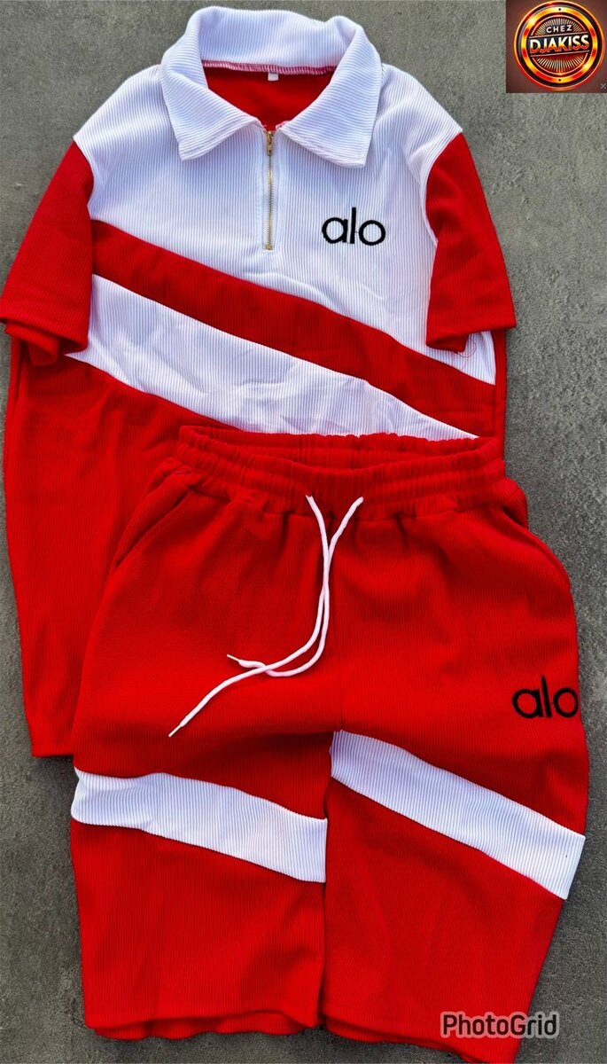 Modernisez votre look sportif avec cet ensemble rouge et blanc. Confortable et élégant, idéal pour l'été. Parfait pour le sport ou les moments décontractés.
