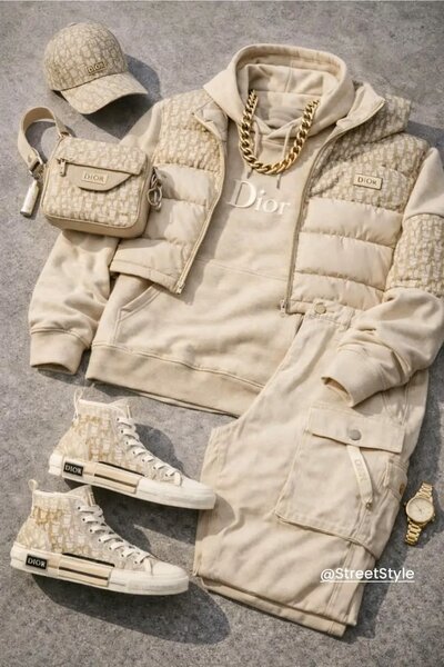 Profitez du confort ultime avec cet ensemble sport beige, idéal pour un style décontracté et tendance. Comprend un t-shirt, short, sac bandoulière, chaussures et casquette. Design moderne.
