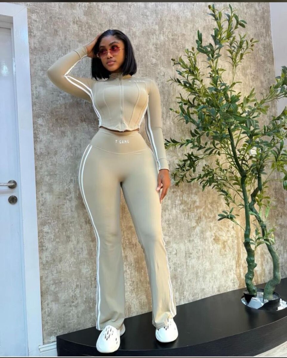 Découvrez cet ensemble sportif pour femme, alliant style et confort. Conçu en tissu extensible, il offre une liberté de mouvement maximale. Idéal pour les séances de sport ou une journée décontractée. Sa couleur beige tendance s'adapte à toutes les occasions. Choisissez-le pour un look moderne et dynamique.