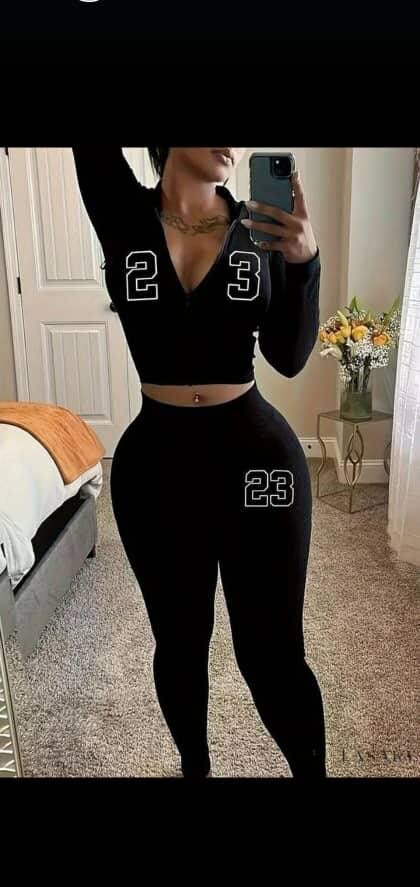 Découvrez cet ensemble sportif pour femme, parfait pour un look décontracté et branché. Composé d'un haut à manches longues et d'un pantalon assorti, il offre confort et style avec son design numéro 23. Idéal pour le sport ou les sorties détente.