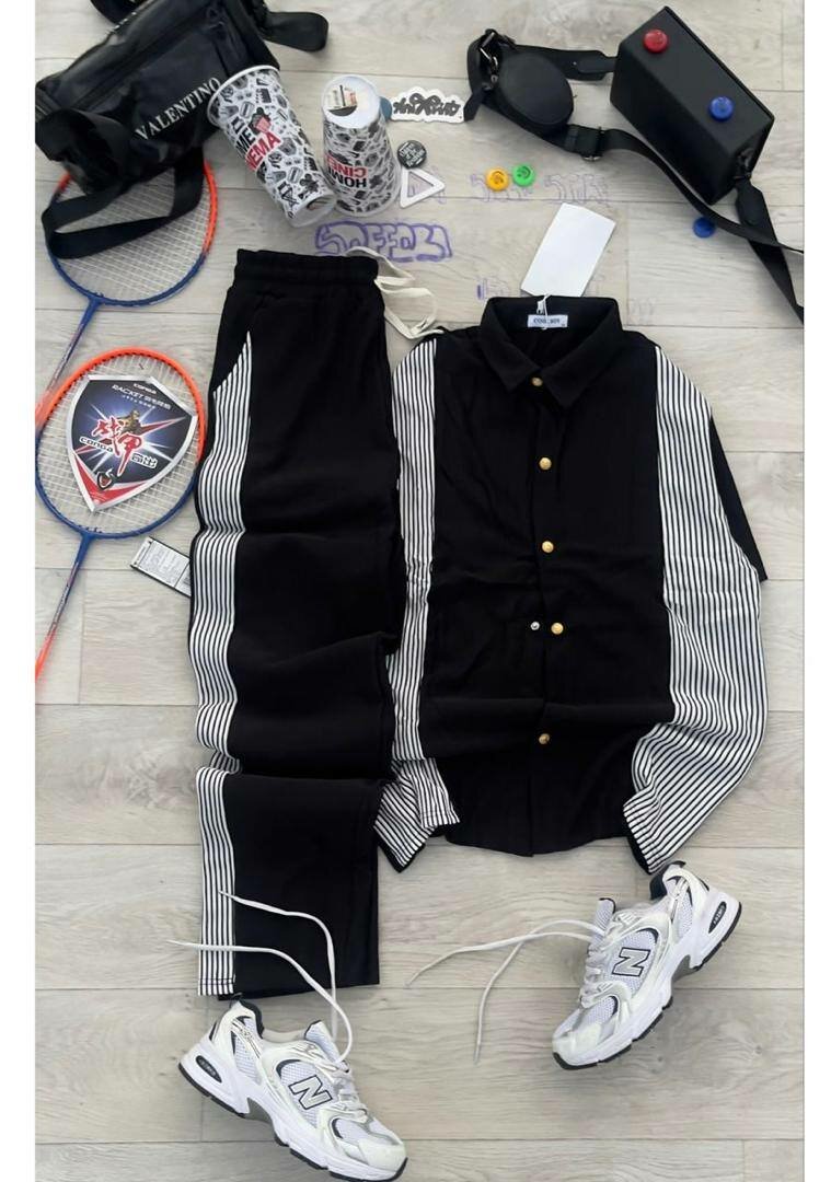 Découvrez cet ensemble sportif noir élégant, idéal pour vos activités décontractées ou vos sorties sportives. Composé d'une chemise à manches rayées et d'un pantalon assorti, il offre un style moderne et confortable. Parfait pour les passionnés de mode active.