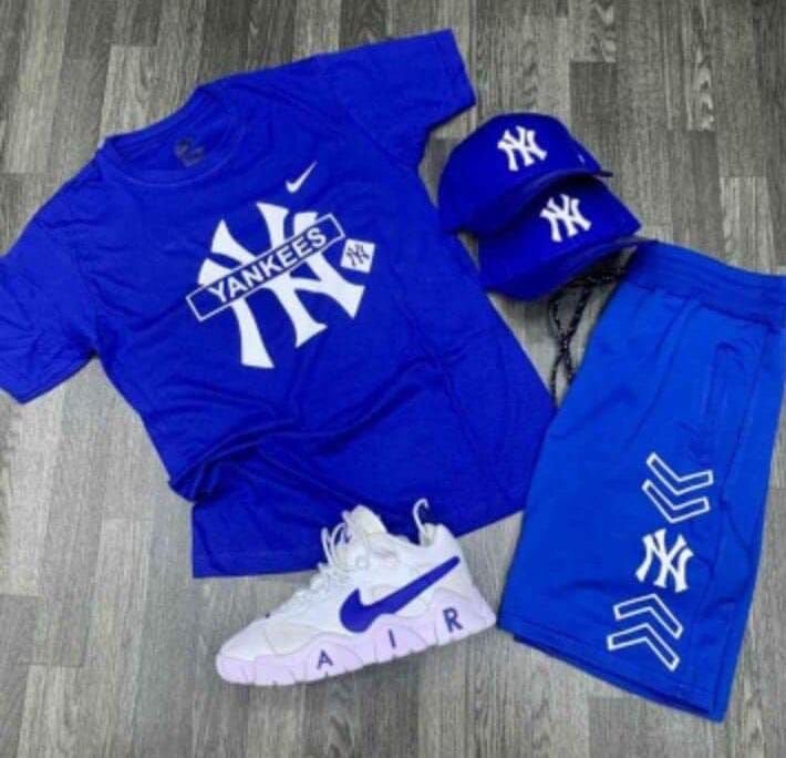 Ensemble sportif tendance pour homme avec logo des Yankees. Inclut un t-shirt, un short, des baskets et une casquette assortie. Parfait pour le sport ou les sorties décontractées. Tissu de haute qualité pour un confort optimal. Affichez votre passion avec style!