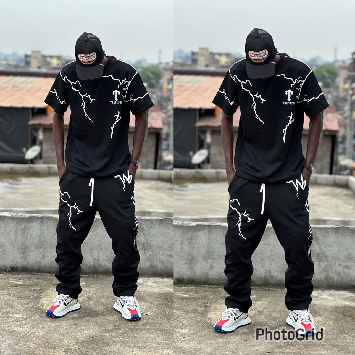Optez pour cet ensemble streetwear noir avec motifs éclairs pour un look tendance et confortable. Parfait pour les sorties décontractées, il exprime votre style unique et audacieux.