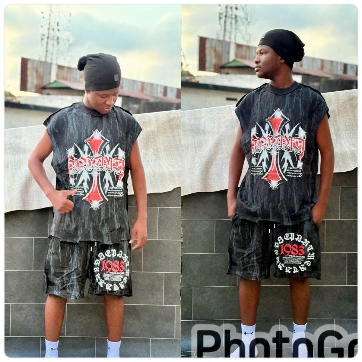 Découvre cet ensemble streetwear unisexe avec motif croix et design unique. Idéal pour une tenue décontractée et stylée. Tissu confortable, parfait pour le quotidien ou une sortie tendance.