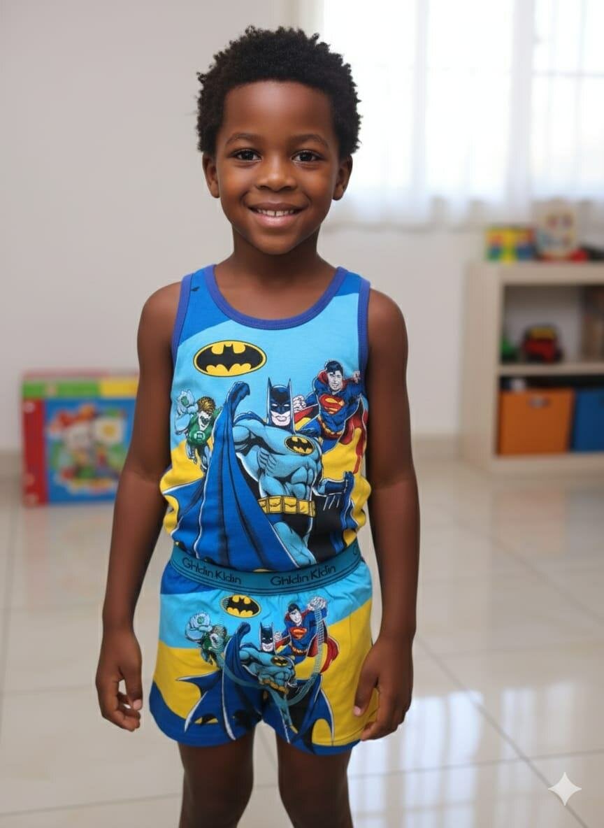 Ensemble confortable pour enfant avec motifs de super-héros, idéal pour une hygiène pleines d'aventures. Fabriqué en matériau doux et respirant, cet ensemble est parfait pour les petits fans de bandes dessinées. Lavable en machine, il combine style et praticité.