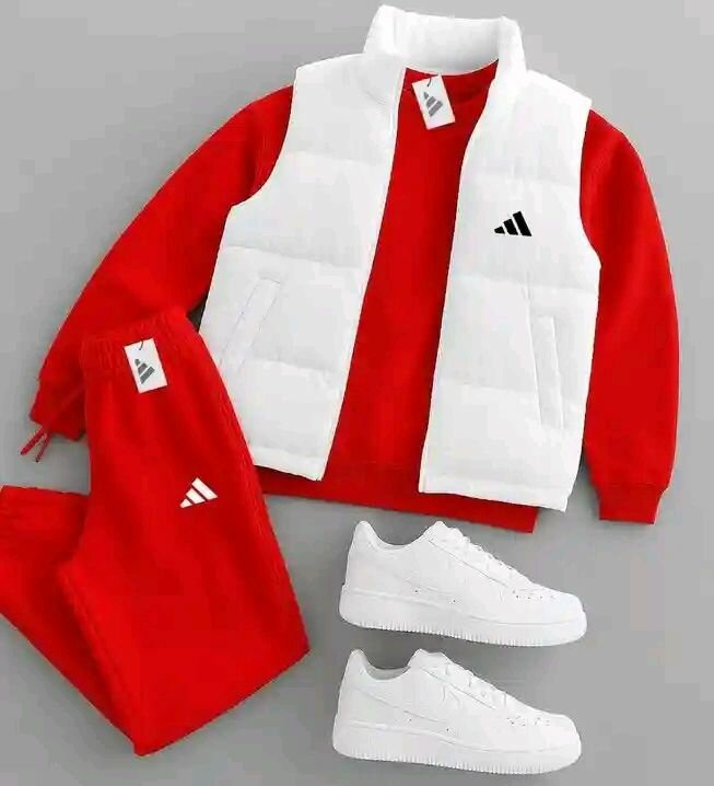 Tenue de sport Adidas complète pour homme. Comprend sweat-shirt, pantalon et gilet. Conception confortable et résistante. Logo Adidas emblématique. Idéal pour le sport et les activités quotidiennes.