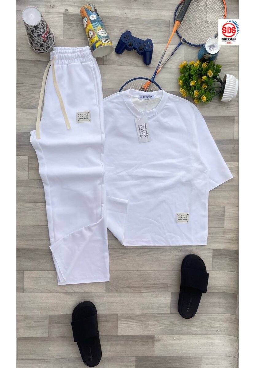 Ensemble confortable et élégant composé d'un t-shirt et d'un pantalon blanc. Idéal pour le sport et les activités décontractées. Conçu pour un maximum de confort et de style.