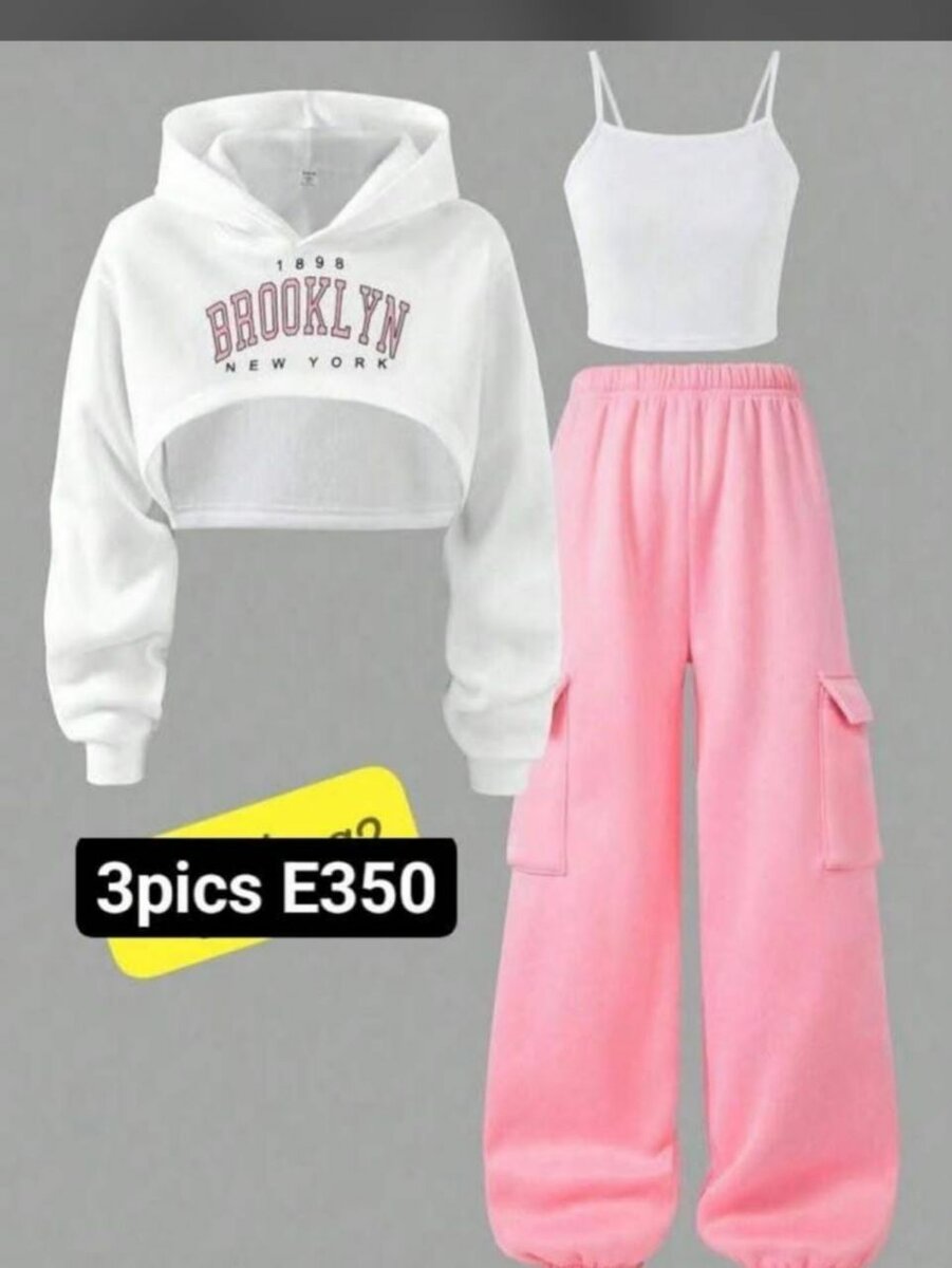 Ensemble survêtement cargo femme comprenant un sweat à capuche, un débardeur et un pantalon cargo rose confortable et élégant. Idéal pour toutes les occasions décontractées.