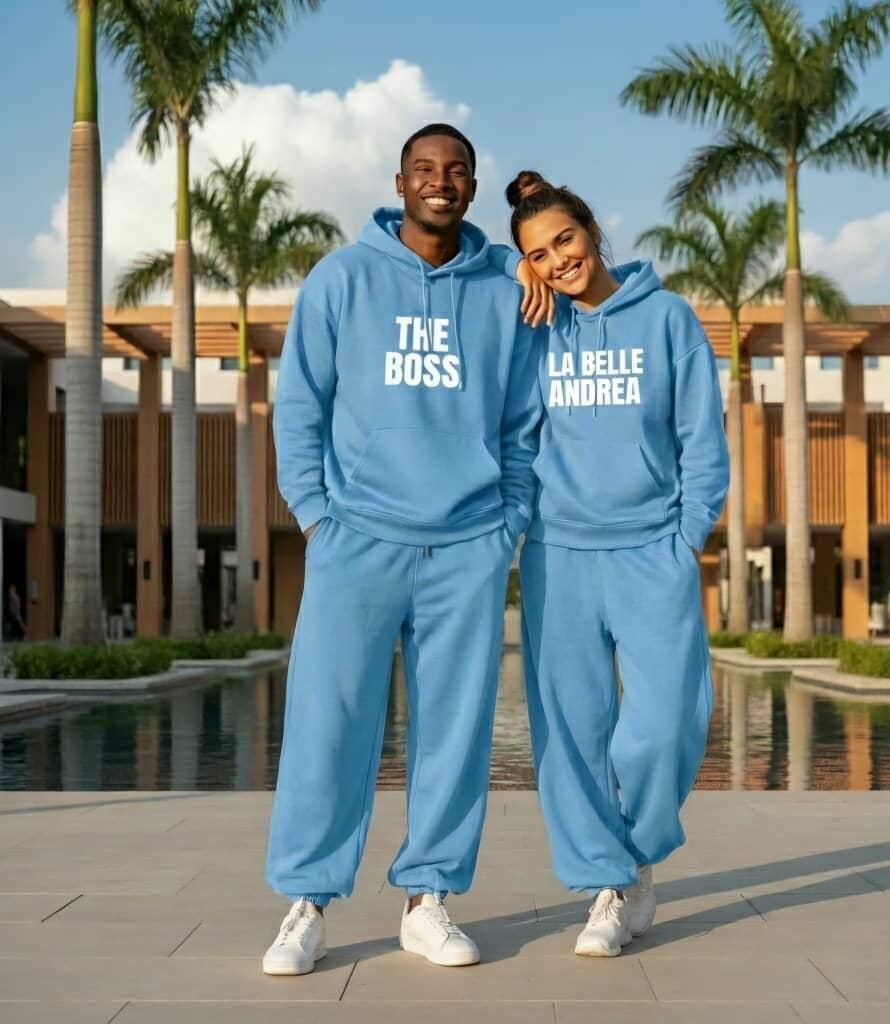 Exprimez votre complicité avec ces ensembles survêtements assortis parfaits pour les couples. Confortables et stylés, ces sweats et pantalons à message sont idéaux pour toutes les occasions décontractées. Laissez votre style parler avec un look unique et coordonné. Disponible en plusieurs couleurs et designs élégants, c'est un choix parfait pour les duos modernes.