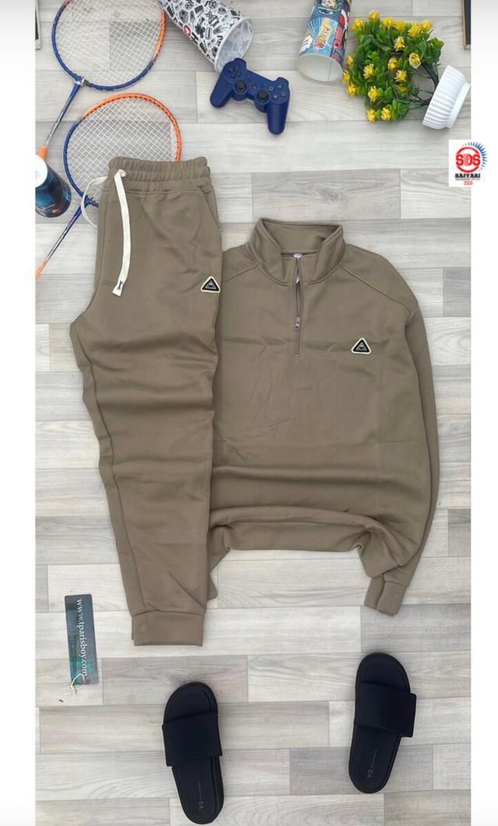 Survêtement pour homme, confortable et élégant. Comprend un haut à fermeture éclair et un pantalon assorti. Disponible en noir, blanc et kaki. Idéal pour le sport et les activités quotidiennes.