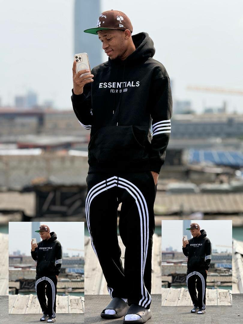 Survêtement Essentials noir pour homme. Conçu pour le confort et le style, cet ensemble est idéal pour les activités décontractées. Fabriqué avec des matériaux de qualité pour une durabilité maximale.