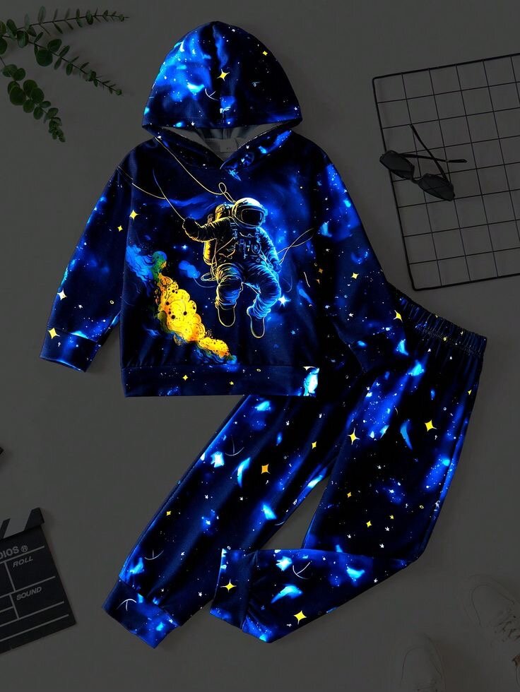 Ensemble survêtement garçons avec capuche et motifs imprimés. Confortable et tendance, idéal pour les activités décontractées. Disponible en différentes tailles et motifs.