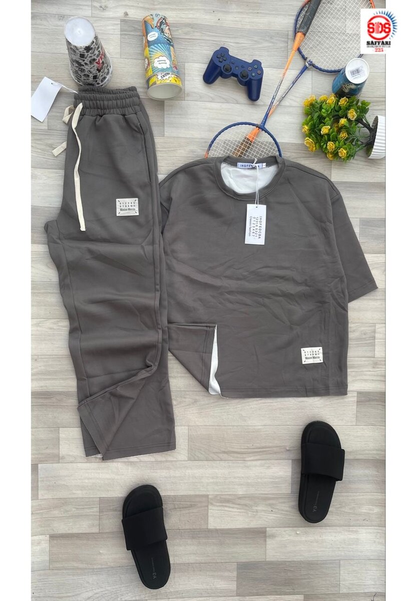 Ensemble survêtement gris pour homme, confortable et élégant. Conçu pour le sport et les activités quotidiennes. Composition et tailles disponibles. Idéal pour un look décontracté et athlétique.