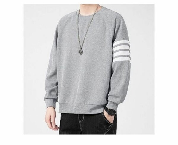 Sweat-shirt gris à rayures