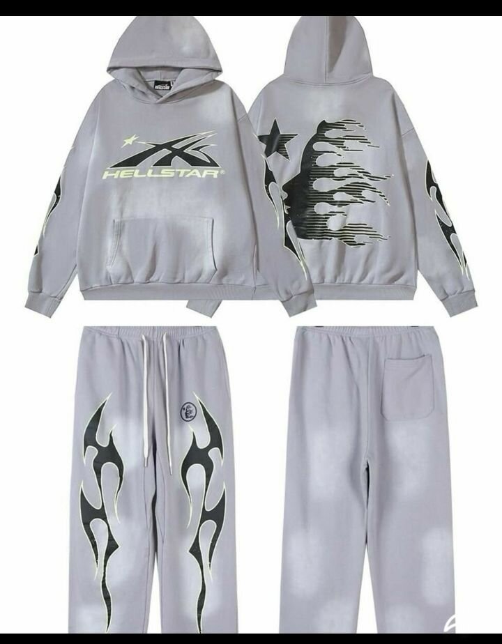 Découvrez le survêtement Hellstar, confortable et tendance. Conçu pour les amateurs de mode streetwear, cet ensemble comprend un hood et un pantalon assortis. Idéal pour les activités décontractées ou le quotidien.