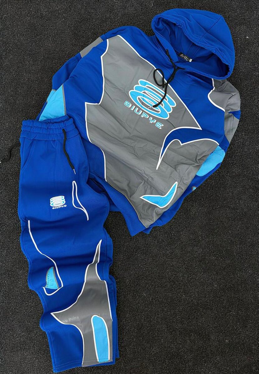 Survêtement pour homme de grande qualité, confortable et élégant. Conçu pour les activités sportives et le style urbain. Disponible en bleu avec des accents gris et bleu clair.