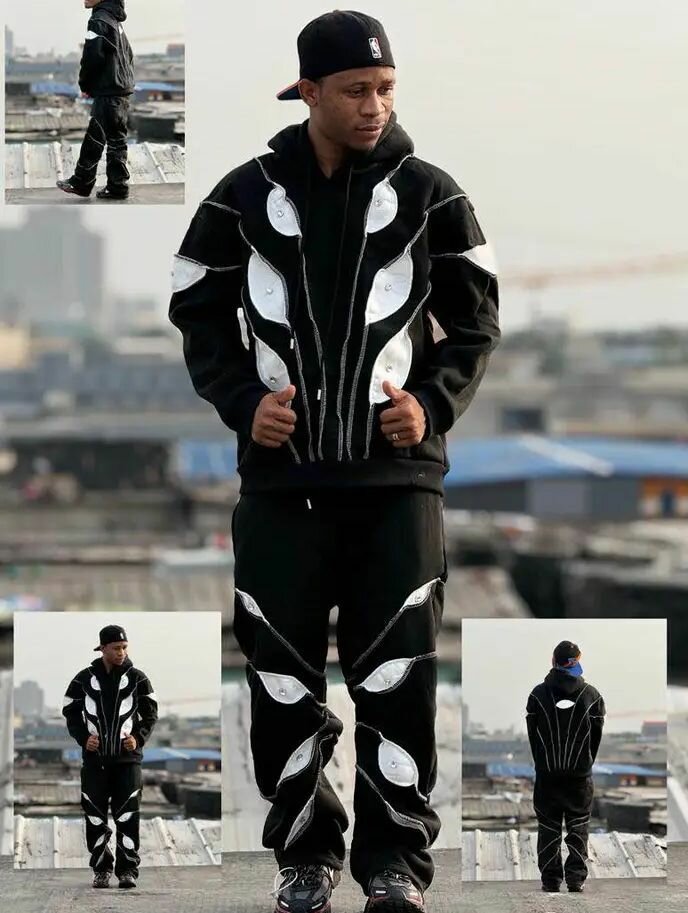 Survêtement homme luxe pour un look tendance. Conçu pour le confort et le style, cet ensemble est idéal pour les activités décontractées ou pour une tenue streetwear. Disponible en noir et bleu.