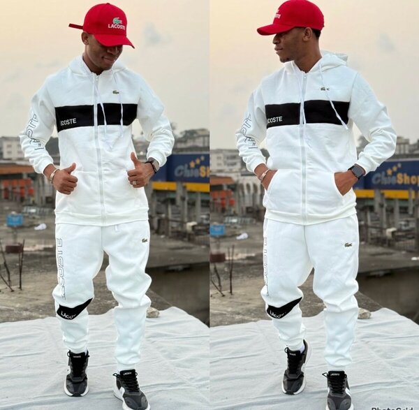 Ensemble survêtement homme noir et blanc pour un style urbain. Conçu pour le confort et la mobilité, il est idéal pour les activités sportives ou décontractées.