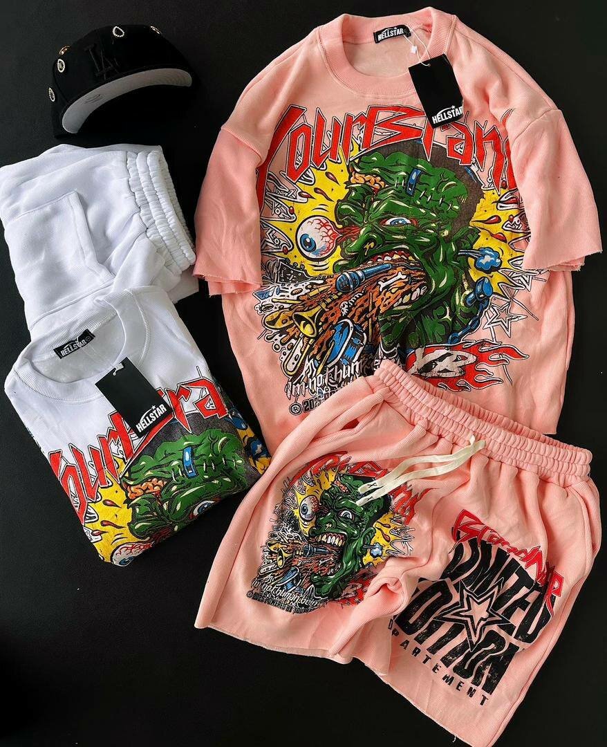 Ensemble survêtement homme design et confortable. Comprend un t-shirt et un short assortis, parfaits pour les activités sportives ou décontractées.