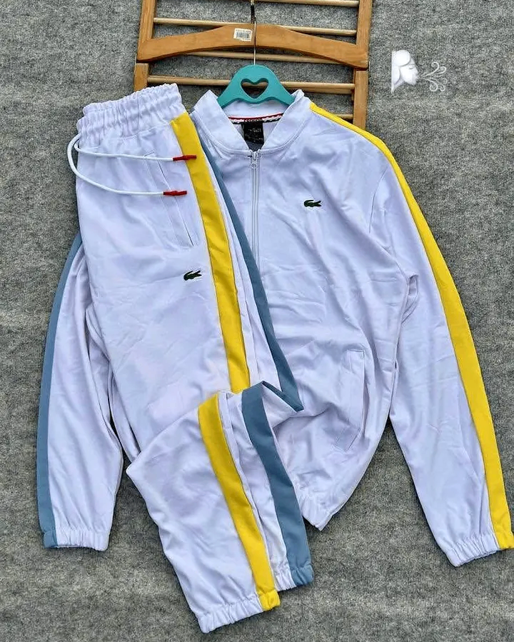 Ensemble survêtement Lacoste blanc pour homme. Conçu pour le sport et le quotidien, il offre un confort et une liberté de mouvement. Idéal pour les activités sportives ou pour une tenue décontractée.