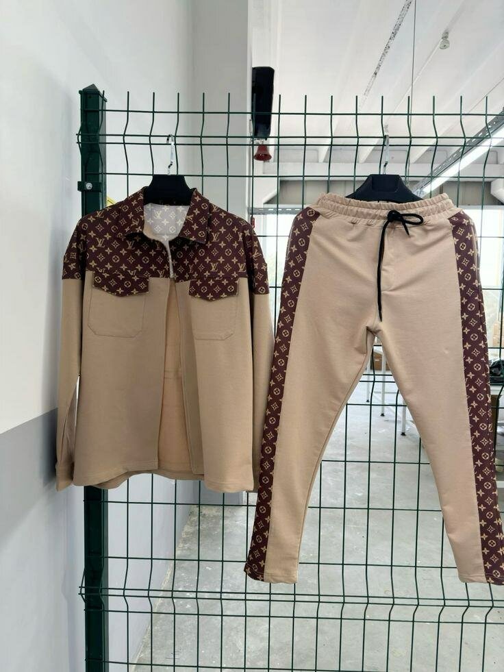 Survêtement élégant avec veste et pantalon assortis, parfait pour un style décontracté et tendance.