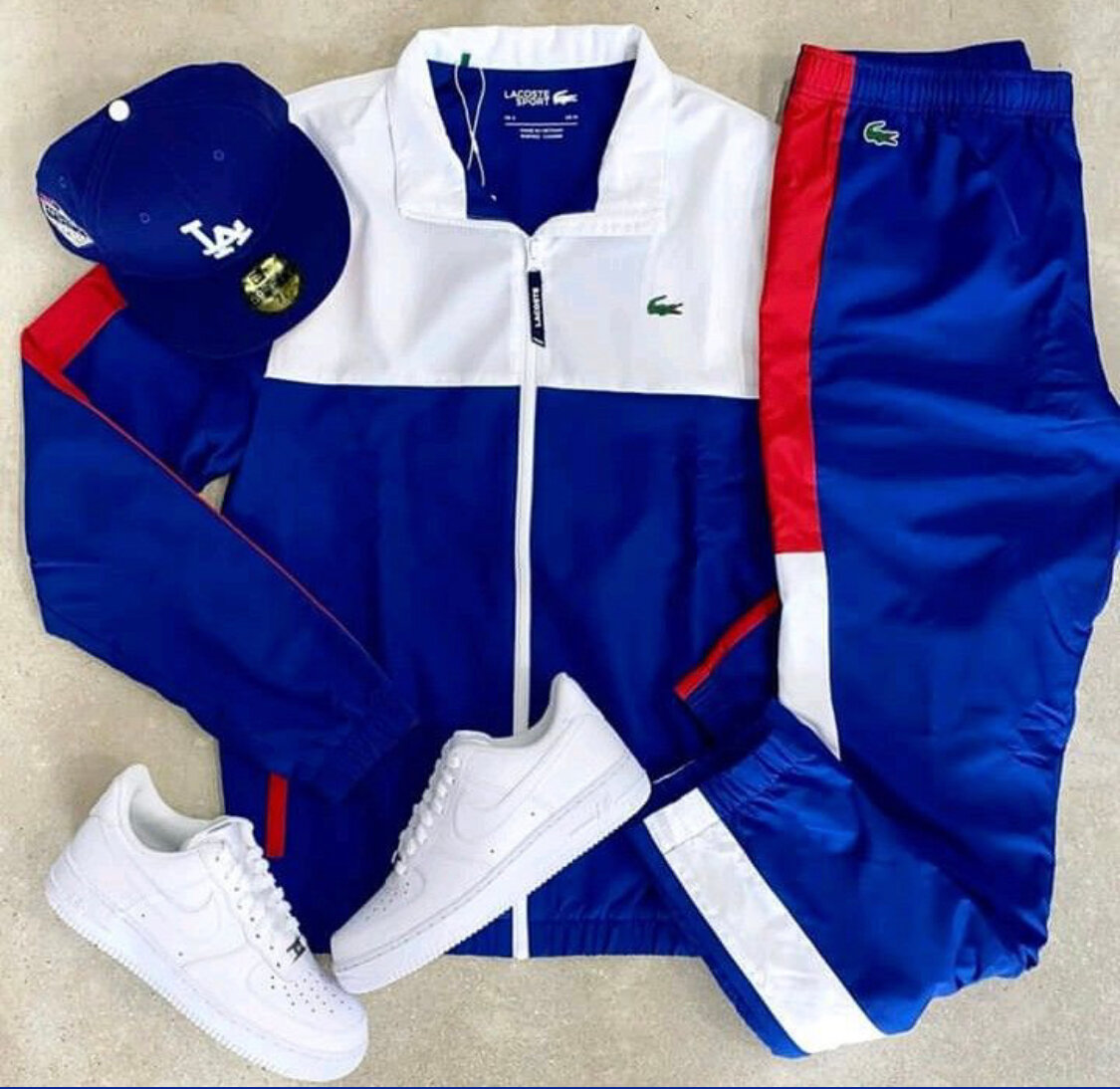 Découvrez ce superbe ensemble survêtement, parfait pour un look sportif et stylé. Composé d'une veste, d'un pantalon et assorti avec des baskets blanches, il est idéal pour les amateurs de mode urbaine. Fabriqué dans des matériaux de haute qualité pour un confort optimal. Parfait pour les activités sportives ou les sorties décontractées.