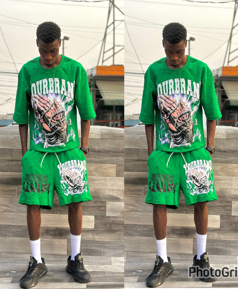 Ensemble survêtement Ourbran vert pour hommes. Conçu pour allier confort et style, cet ensemble est idéal pour les activités décontractées. Tissu de haute qualité, design moderne avec impression graphique.