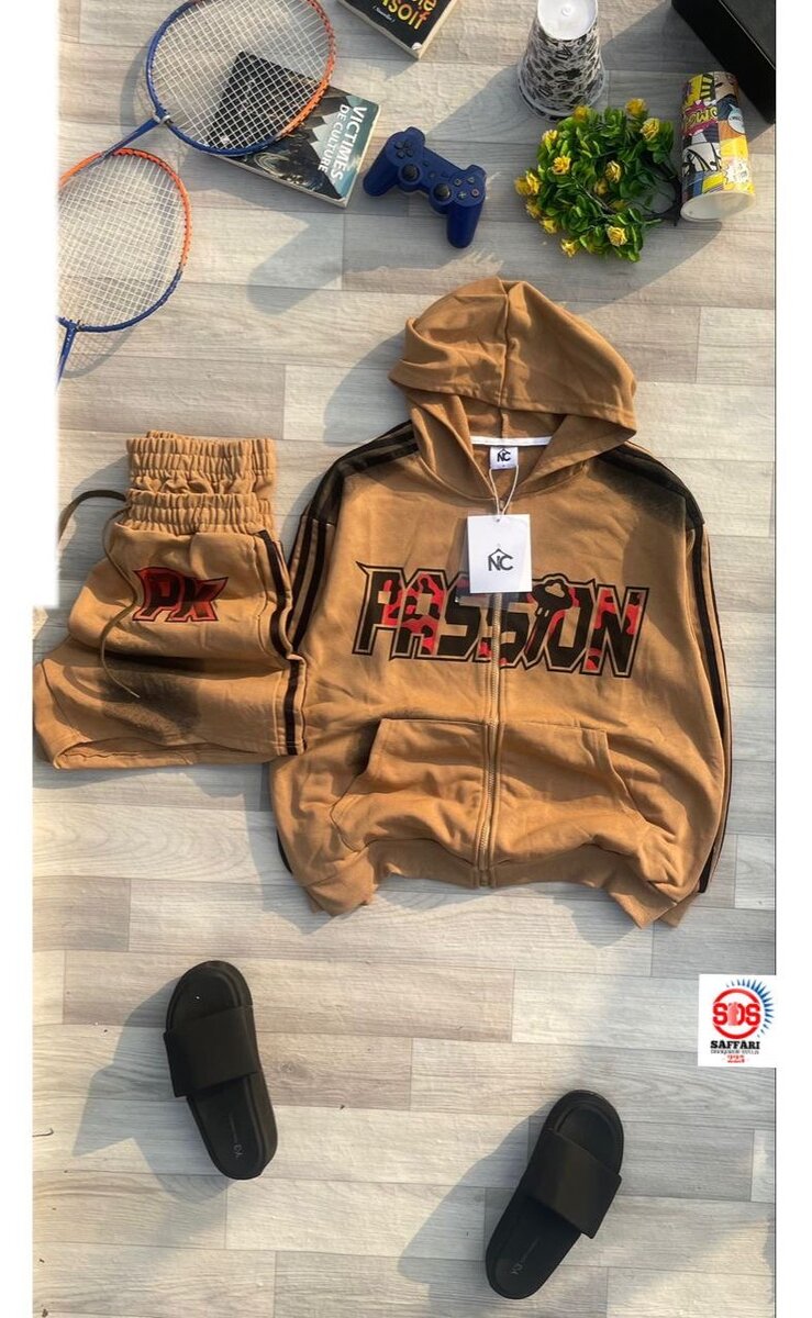 Survêtement marron confortable avec capuche et poche avant. Idéal pour le sport ou les activités décontractées. Conçu pour ceux qui recherchent le confort et le style.