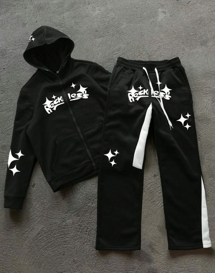 Survêtement ROCK leet noir pour homme, ensemble sweat et pantalon, parfait pour le sport ou les sorties décontractées. Conçu pour un confort optimal.