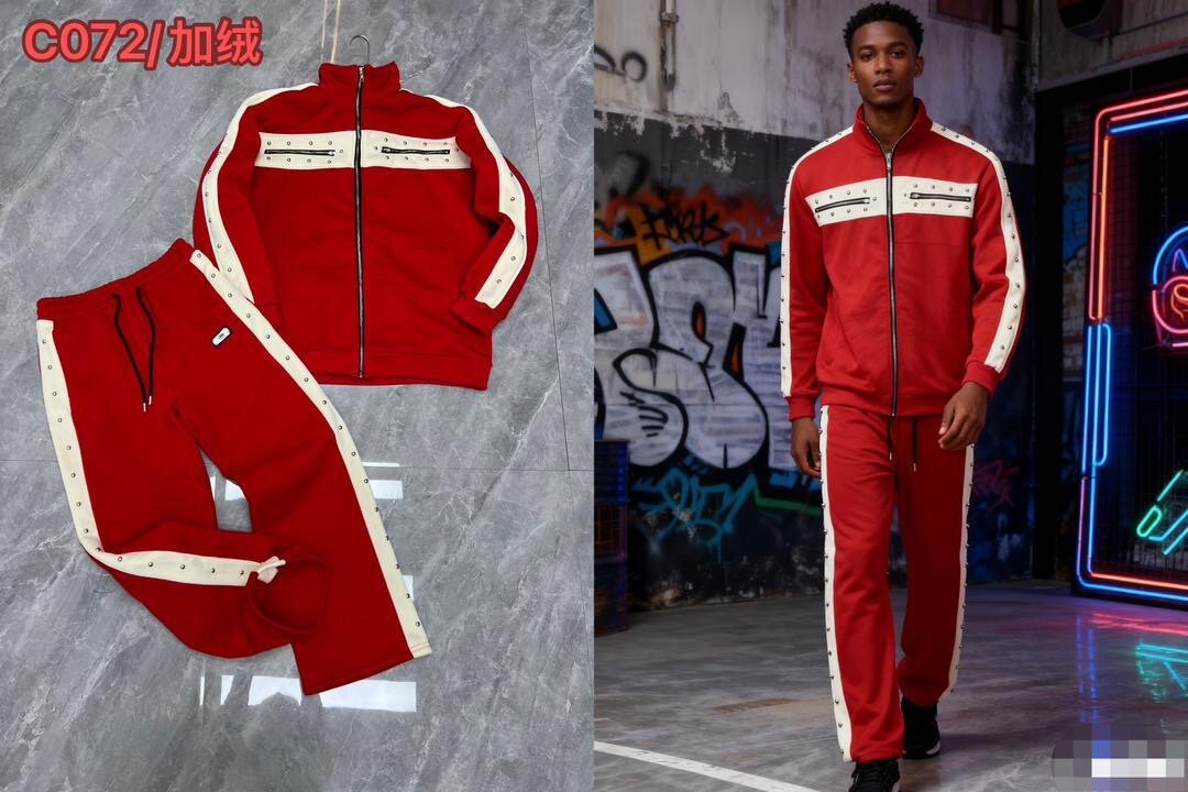 Ensemble survêtement rouge et blanc pour homme. Conçu pour le sport et le quotidien, cet ensemble est idéal pour ceux qui recherchent confort et style. Disponible en différentes tailles.