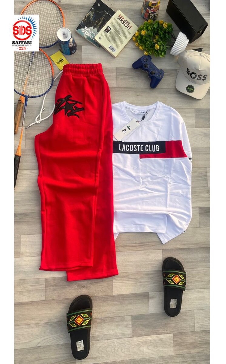 Ensemble de survêtement pour hommes, comprenant un pantalon et un haut, de marques telles que Adidas, New Balance et Lacoste. Conçu pour le confort et la performance sportive.