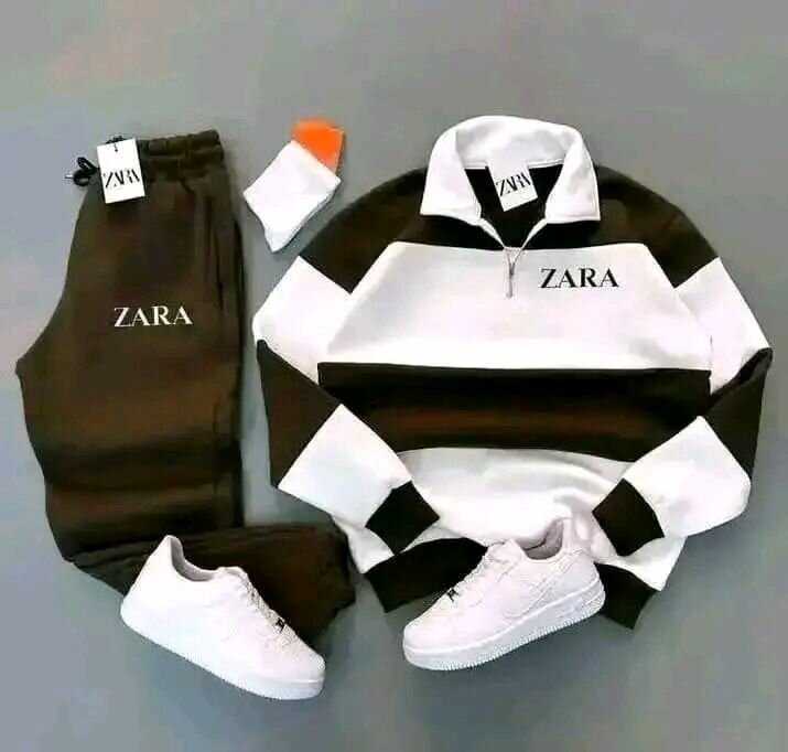 Découvrez cet ensemble survêtement ZARA comprenant un sweat et un pantalon noir et blanc. Conçu pour un confort optimal, il est idéal pour les activités sportives ou les sorties décontractées. Les baskets blanches sont parfaites pour compléter le look.