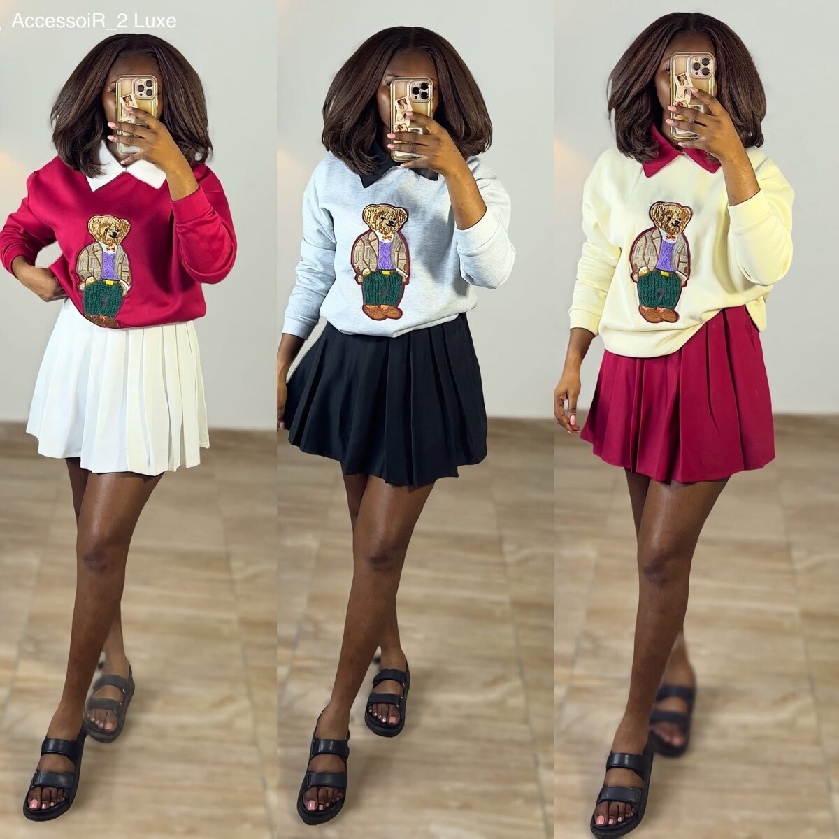 Découvrez cet ensemble élégant composé d'un sweat à motif ours polaire et d'une jupe plissée. Conçu pour un look décontracté et tendance, cet ensemble est idéal pour les sorties en ville ou les moments décontractés avec des amis. Disponible en plusieurs combinaisons de couleurs.