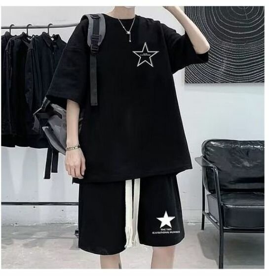 Optez pour cet ensemble décontracté composé d'un T-shirt et d'un short orné d'une étoile. Parfait pour une allure tendance et confortable, idéal pour les sorties ou les loisirs. Tissu respirant pour un confort tout au long de la journée.