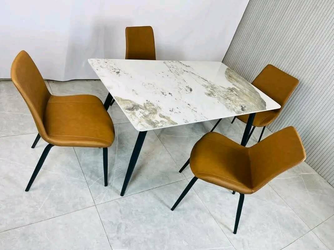 Ensemble de salle à manger élégant avec une table en marbre et 4 chaises confortables. Idéal pour sublimer votre intérieur avec une touche moderne et raffinée. Facile à nettoyer et parfait pour les repas en famille ou entre amis.