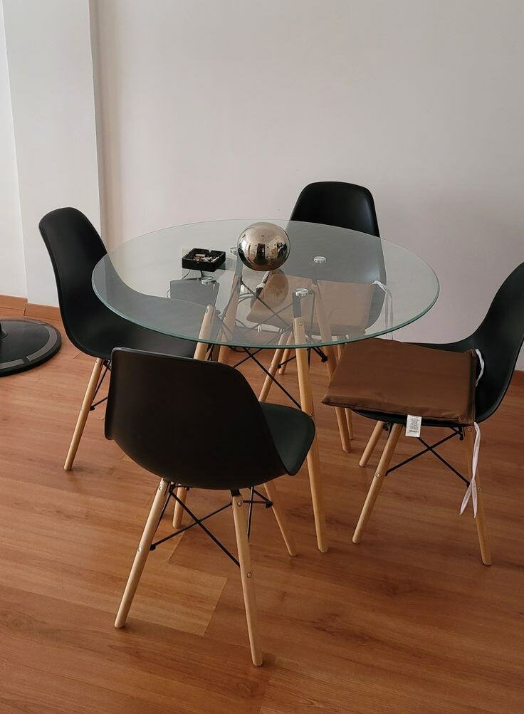 Ajoutez une touche d'élégance à votre salle à manger avec cet ensemble de table en verre et chaises modernes. Parfait pour un espace contemporain, cet ensemble offre confort et style en un.