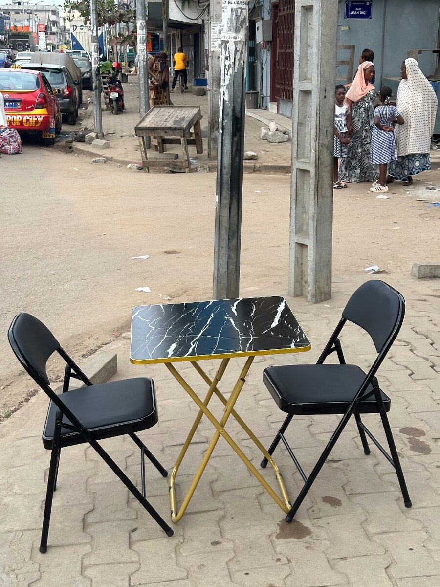 Idéal pour économiser de l'espace, cet ensemble table et chaises pliantes combine élégance et praticité. Parfait pour les espaces réduits ou les occasions spéciales en extérieur comme en intérieur. Le dessus de table en imitation marbre ajoute une touche moderne et chic.