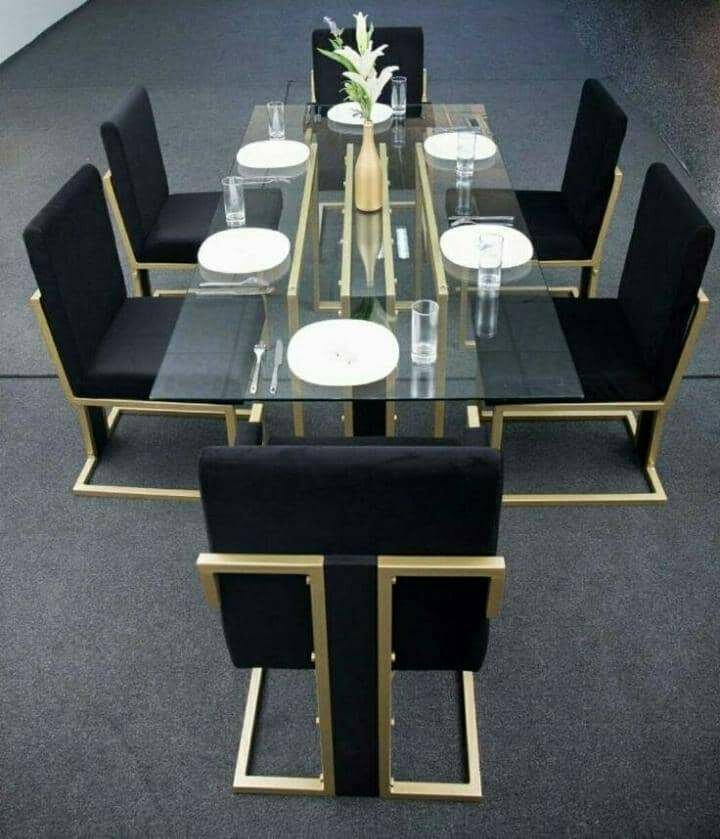 Table à manger luxe avec chaises noires