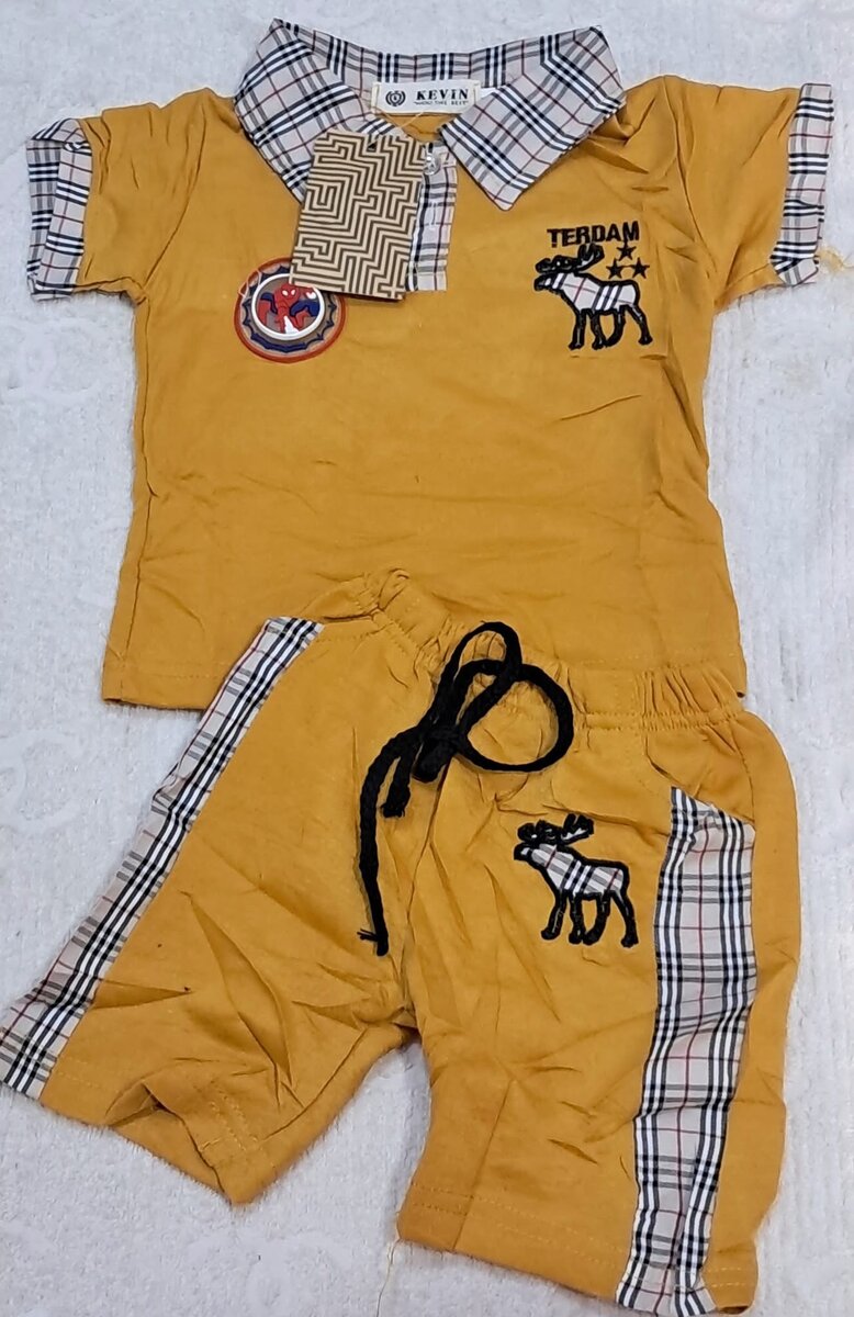 Ensemble confortable en coton pour enfants, disponible en plusieurs couleurs. Parfait pour l'été, avec motifs ludiques et col à carreaux élégant. Idéal pour les sorties décontractées ou à la maison.