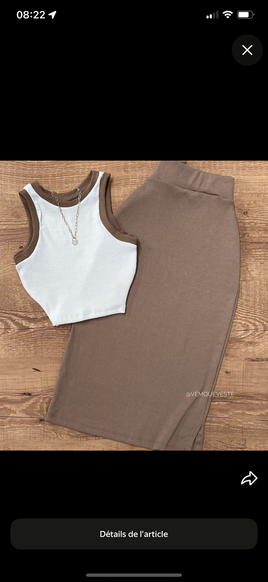 Découvrez cet ensemble élégant composé d'un top sans manches et d'une jupe crayon. Idéal pour un look casual chic, cet ensemble est parfait pour le bureau ou une sortie en ville. Confortable et stylé, il s'adapte à toutes les occasions.