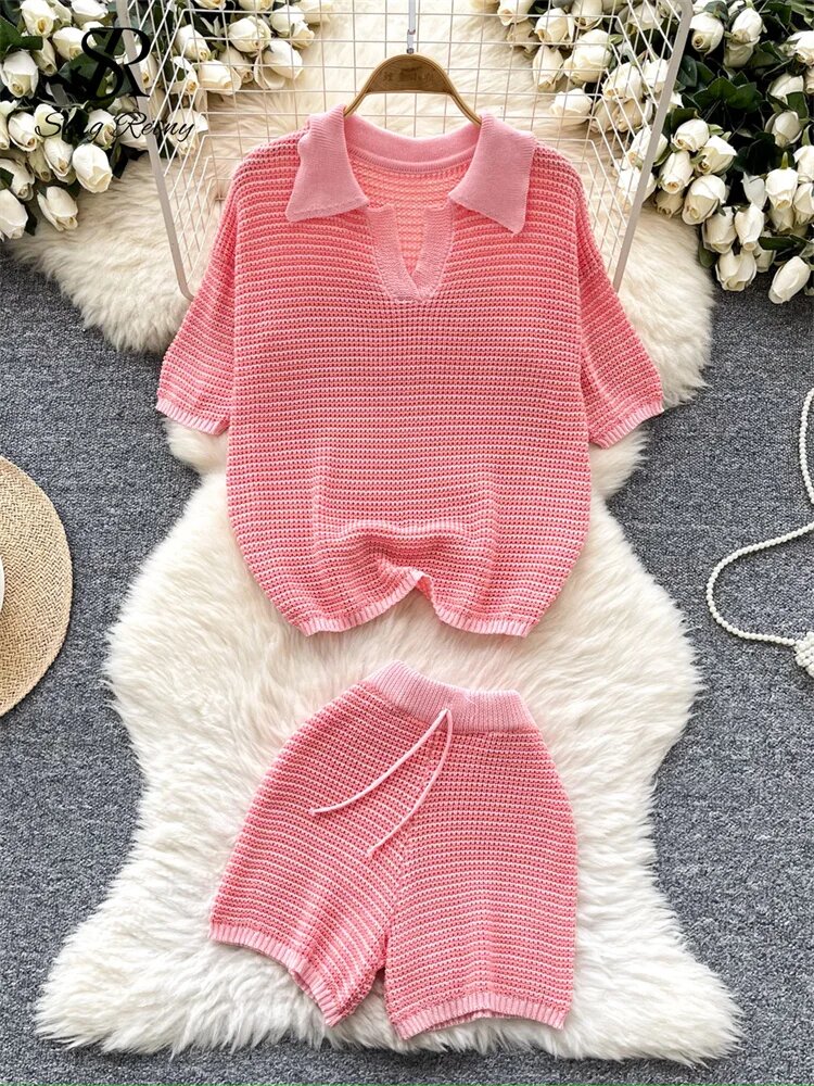 Optez pour cet élégant ensemble tricot rose pour femmes, parfait pour un look décontracté et confortable. Composé d'un haut à manches courtes et d'un short, cet ensemble est idéal pour les journées détendues à la maison ou les sorties estivales. Confort exceptionnel grâce à sa matière douce et respirante. Ajoutez une touche de style à votre garde-robe!